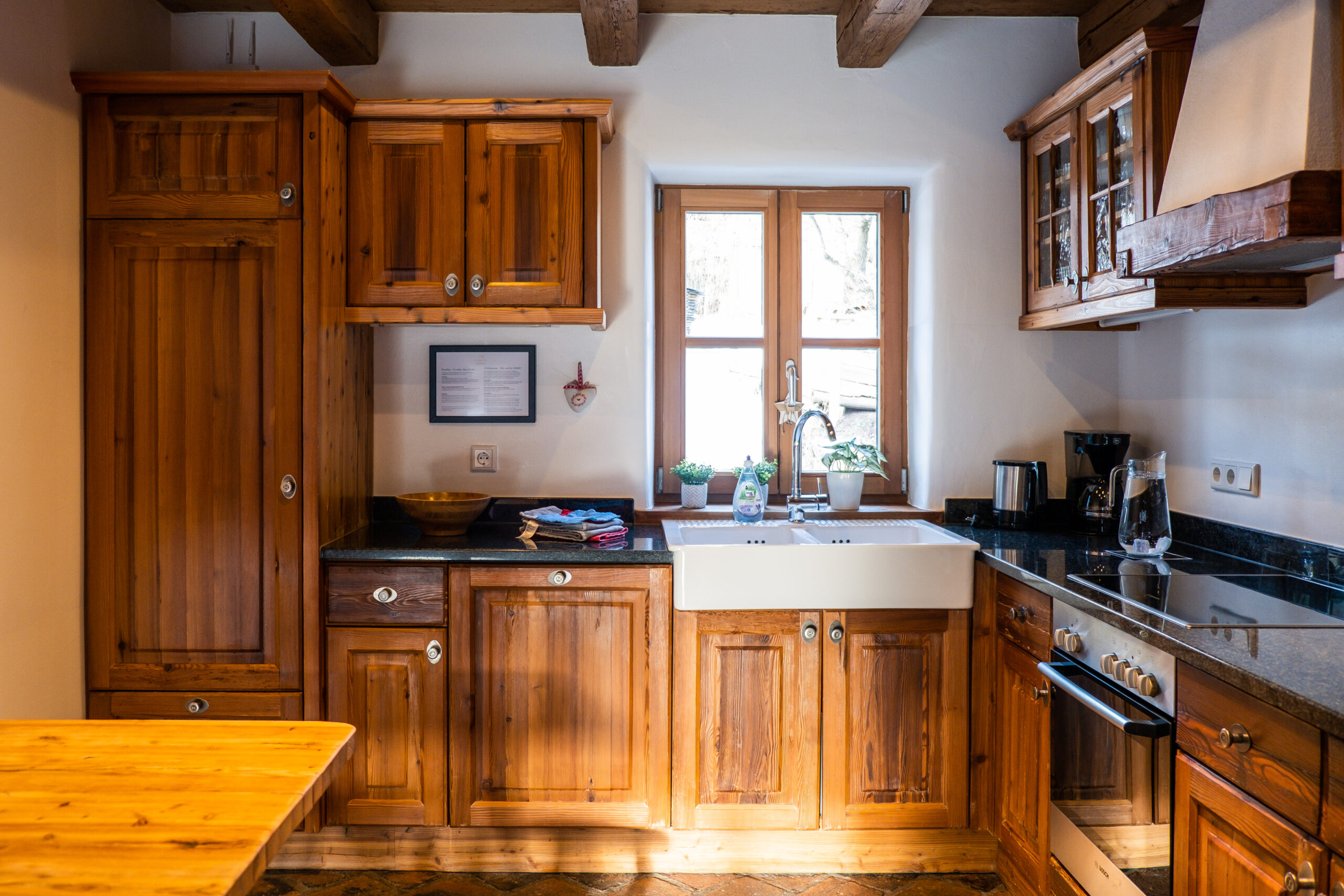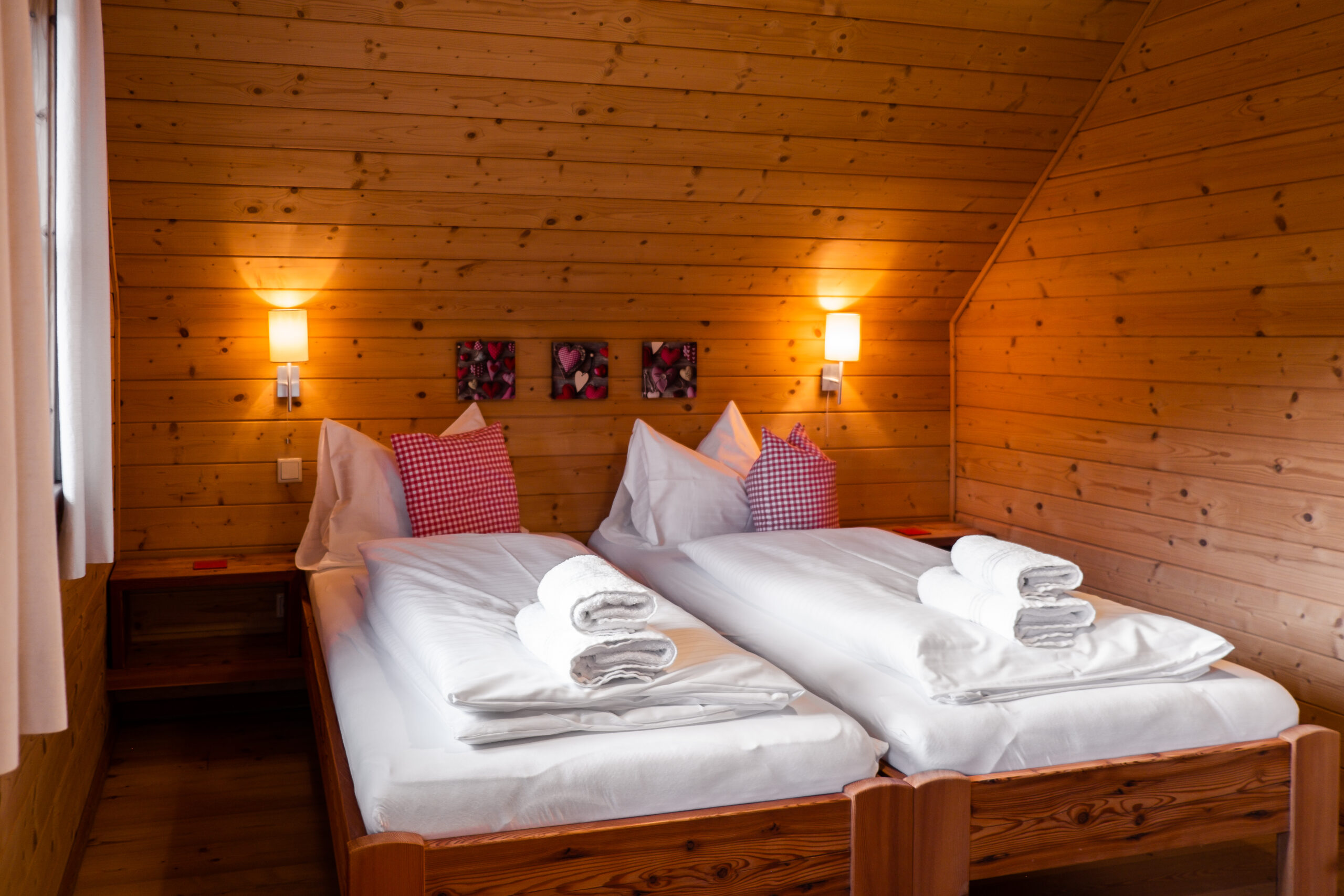 All rooms offer a breathtaking view of the Lungau mountains. Wonderful dreams are guaranteed by cozy wooden beds with fluffy cotton bed linen and the last view of the mountains shimmering in the moonlight. The bedrooms are furnished with handcrafted wardrobes and beds and feature fluffy towels and cotton linens. The underfloor heating ensures cozy warmth, even in winter, and the houses are insulated with real sheep’s wool. This guarantees a very comfortable room climate.